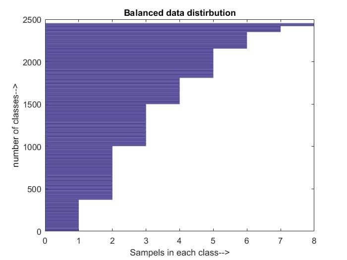%add on samples will be calculated by taking the difference of each %classSamples with highest number of class samples [maximumSamples,sampleClass]=max(classNo); % number of maximum samples for ii=1:numel(class) samplediff(ii)=maximumSamples-classNo(ii); N (ii) = ceil(samplediff(ii)/ 100); end