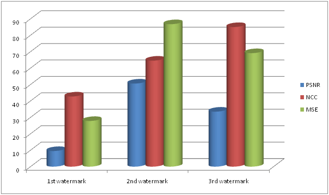 For each selection of gain values, the embedding algorithm is executed, and fitness value is calculated by above equation 2. Once all iterations are finished, the gain factor values for minimum fitness function are picked as the final gain values. These values are used further for the embedding of the watermark message.