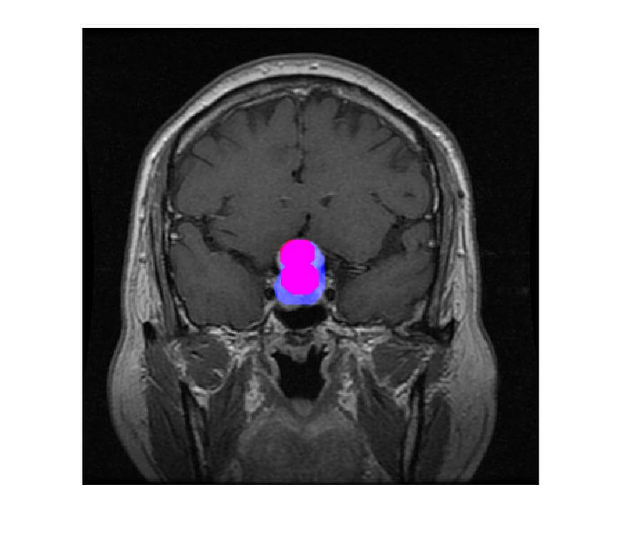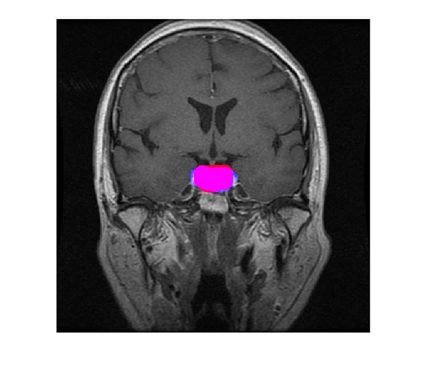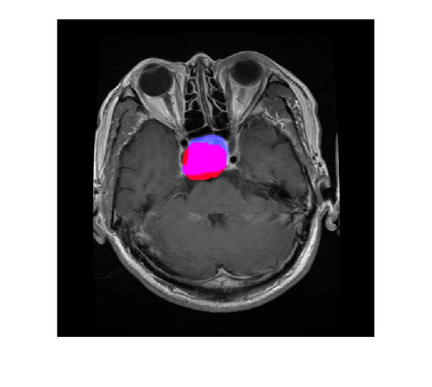 - The extracted tumor will be highlighted in red color and Blue color is the true tumor.