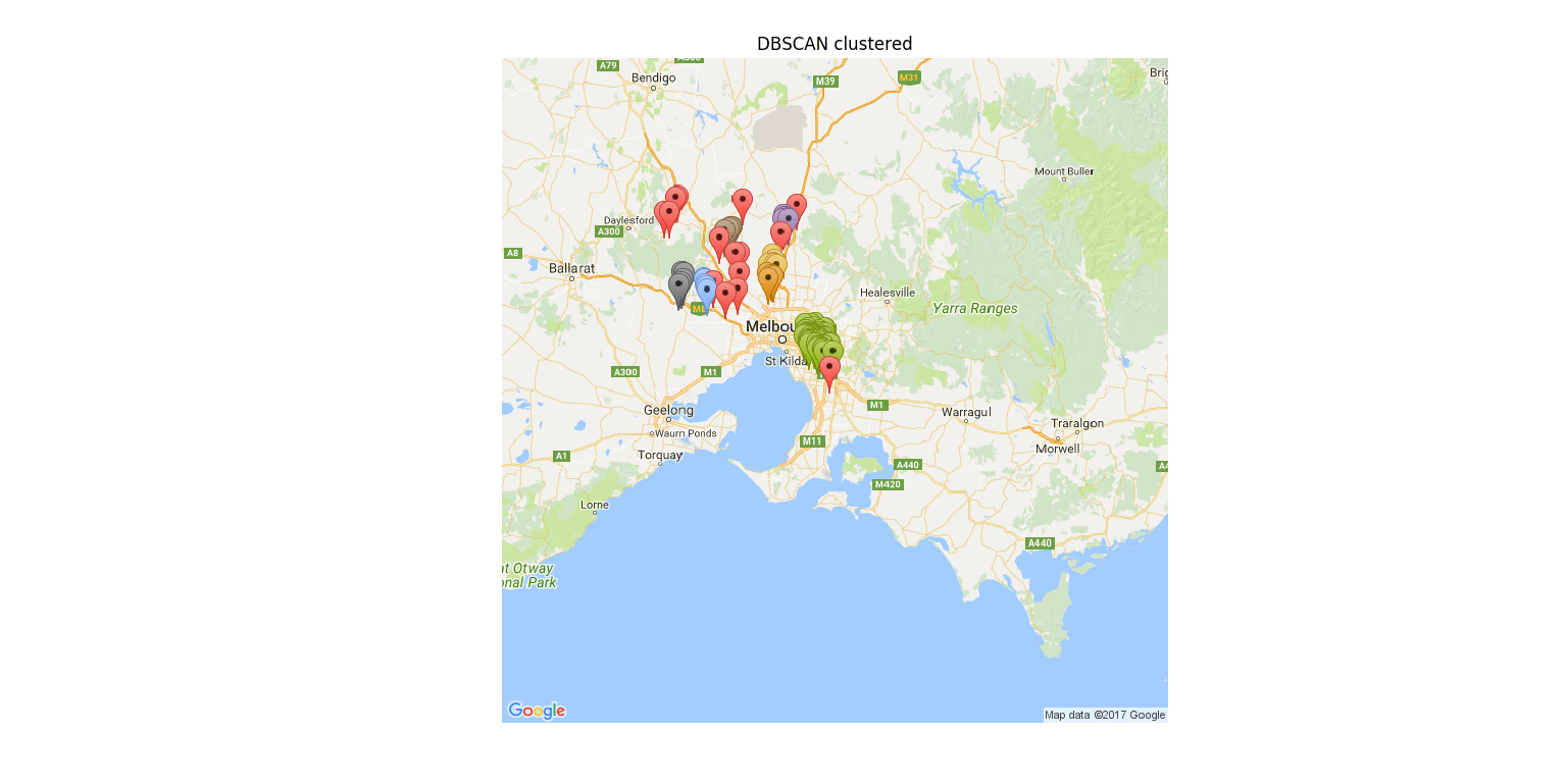 The delivery cost of a courier company can be reduced by geographical clustering of addresses in desired number of clusters dpeending upon the courier boys availablity. This code is using two different clustering algorithm for comparison purpose: kmeans, DBSCAN. DBSCAN is suitable clustering approach for the geographical clustering. The actual geographical distance is calculated by using gogle map API since we have addresses of dleivery locatiosn, we fetched the co-ordinates from google map and calculated the distance. Based on this distance optimal routing for courier boy is planned in every cluster. For the provided data the following were formed geographical clusters by kmeans and DBSCAN. The clusters are formed as