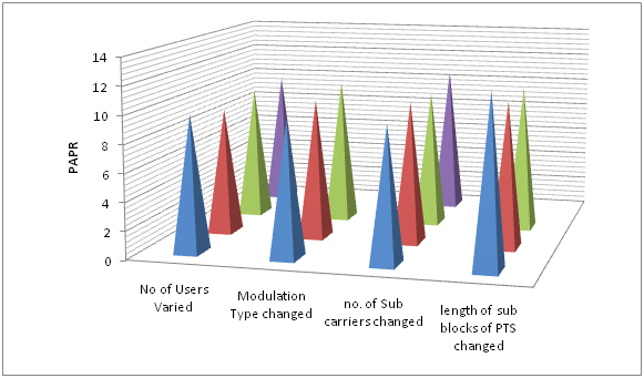 In this work PTS sequence is optimised to acaheive low PAPR ratio. For this gravitational search algorithm (GSA) optimisation and Particle search optimisation (PSO) in combination used and every possible case is considered for results analysis.