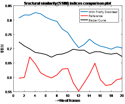 We have proposed a novel video stabilization method is based on reducing the features points in beizer curve. KLT feature tracking method is used for features tracking and initialized by SURF features of first reference frame. In subsequent frames these corresponding features are tracked and by image warping method followed by firefly tuned beizer curve smoothing, image is transformed to stable state. MATLAB’s computer vision toolbox saved our time to write the code of SURF features, KLT tracking, image warping etc and we could focus on beizer curve smoothing algorithm.